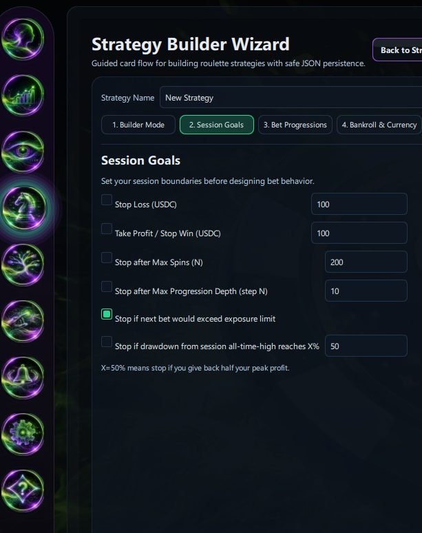 - Define custom bankroll parameters and session limits